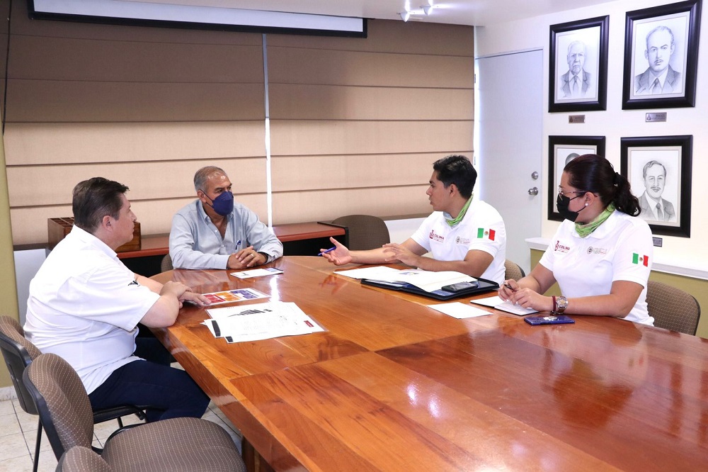 Adolfo Núñez González y Erick Alberto González Sánchez, titulares de la Secretaría de Educación y Cultura del Gobierno del Estado de Colima, y de la Unidad Estatal de Protección Civil (UEPC), respectivamente, se reunieron este jueves en la sala Galerías de la institución educativa, para afinar detalles de la organización del simulacro conmemorativo por el trigésimo séptimo aniversario del sismo ocurrido en el país el 19 de septiembre de 1985.