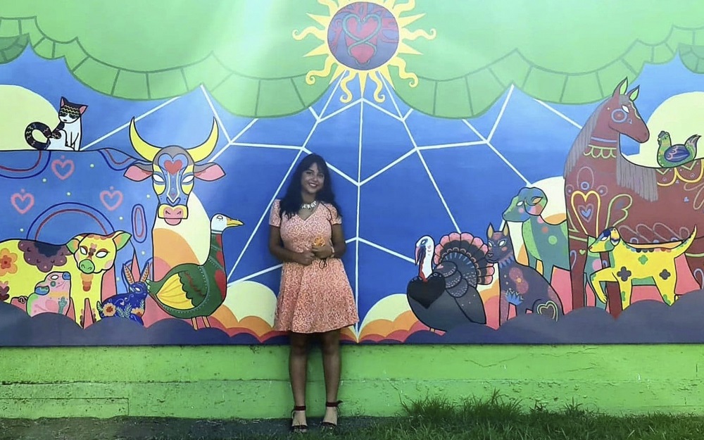 Olivia Ramírez estudia el noveno semestre y realiza su trabajo de titulación sobre la creación de un manual para realizar murales, ya que cuenta con la experiencia de haber pintado uno previamente en la Facultad de Letras y Comunicación y actualmente hace otro en la Facultad de Contabilidad y Administración.