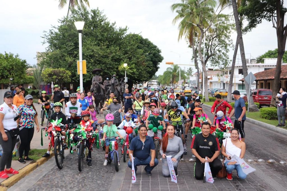 Villa de Álvarez, Col. A 11 de Septiembre de 2022. – El Gobierno Municipal a través del Departamento de Fomento Deportivo llevaron a cabo la mañana de este domingo, el Bici Paseo, familiar Fiestas Patrias 2022, con el objetivo de incentivar la participación y convivencia ciudadana a través del uso de la bicicleta contando con la participación de 90 villalvarenses entre niñas, niños, adolescentes, mamás, papás, jóvenes y colectivos de ciclista.
