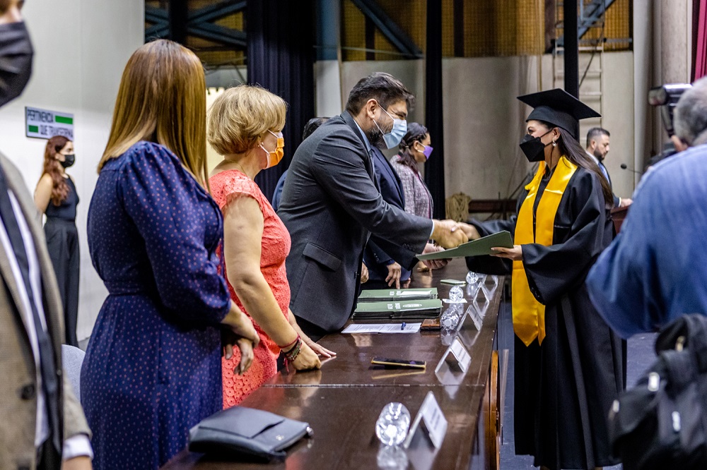 En este mismo sentido, Laura Alejandra Sánchez Sevilla, egresada de la maestría en Fiscal, recordó que les tocó una etapa difícil al tener que estudiar a distancia, “pero incluso así logramos terminar exitosamente un reto que fue único en todos los sentidos. Hoy tengo la fortuna de estar físicamente frente a ustedes y poder decirles de viva voz que esta experiencia fue una bella relación que terminó en fraternidad. Pudimos crecer y salir adelante, y gracias a eso, nos encontramos aquí”.