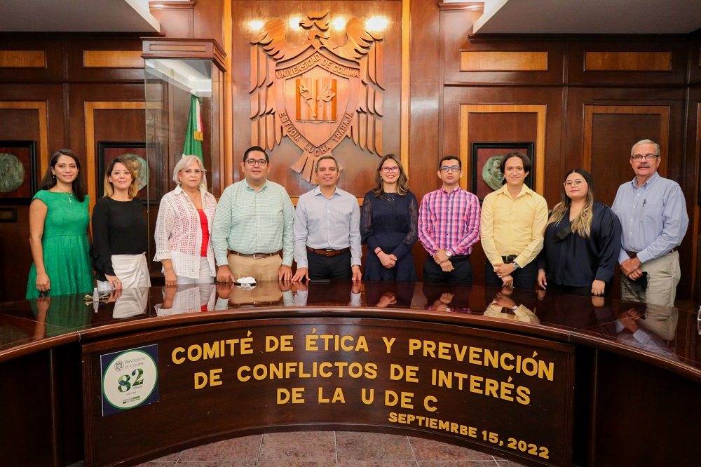 Este jueves, en la sala de juntas de Rectoría, Christian Jorge Torres Ortiz Zermeño, rector de la Universidad de Colima, entregó nombramientos honoríficos a quienes fungirán como vocales del Comité de Ética y Prevención de Conflictos de Interés de la institución.