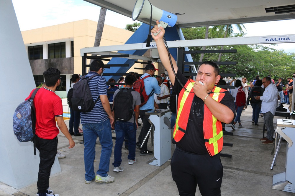 En total evacuaron los edificios 170 elementos del personal, 2 mil 45 estudiantes, siete personas con discapacidad y 35 proveedores.