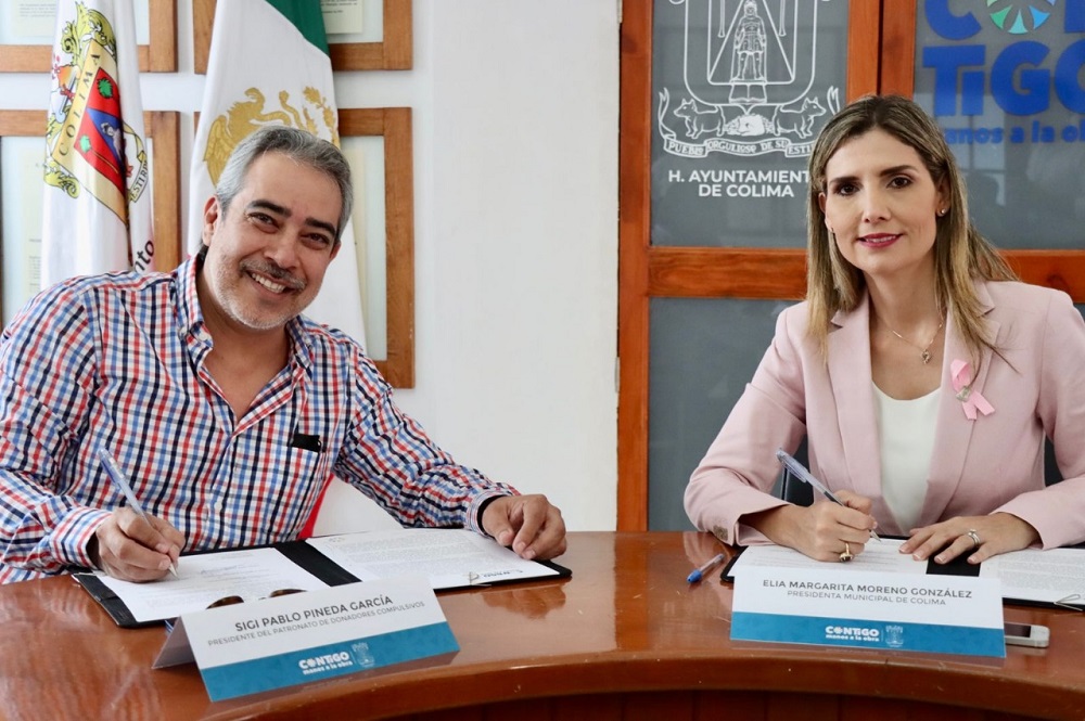 En este acuerdo firmado por la presidenta capitalina y el presidente de Donadores Compulsivos IAP, Sigi Pablo Pineda, se establecen las bases para coordinar esfuerzos para la realización de jornadas de donación de sangre y plaquetas en el Ayuntamiento de Colima, así como la planeación de campañas de sensibilización en el municipio.