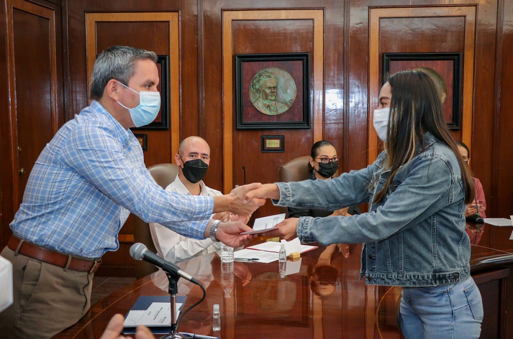 La Máxima Casa de Estudios en el estado y la Federación de Egresados de la Universidad de Colima (FEUC) entregaron este martes la Beca de Titulación de “Apoyo al Egreso FEUC 2022” a 15 egresados y egresadas de esta casa de estudios, para que cubran el trámite administrativo de este proceso.