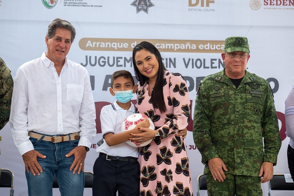 *De las 32 mil 500 que se otorgarán en todo el estado *Indira pone en marcha la campaña “Juguemos sin violencia” desde Tecomán *La mandataria colimense considera que esto también contribuye a reconstruir la paz en nuestro estado