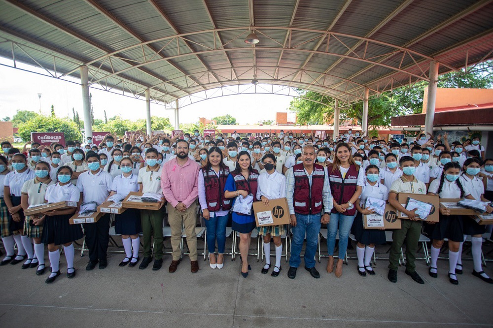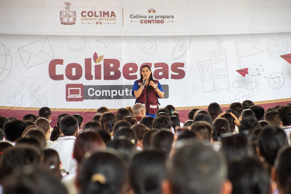 La tarde de este viernes, la gobernadora del estado de Colima, Indira Vizcaíno Silva, entregó 237 laptops gratuitas y 237 uniformes a estudiantes de la Escuela Secundaria Estatal No. 12 de Talentos, ubicada en Villa de Álvarez, a través de los programas ColiBecas-Computadoras y ColiBecas-Uniformes.