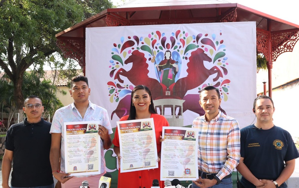 La presidenta explicó que en la parte cultural se realizarán presentaciones de ballets folclóricos, danzas y obras de teatro, entre otros espectáculos que se pueden conocer a detalle consultando los programas en la página web del Ayuntamiento: https://www.cuauhtemoc-col.gob.mx/portal/