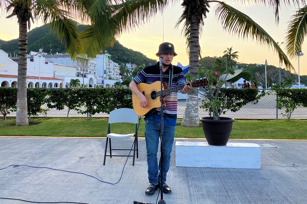 Manzanillo, Col. El Instituto Municipal de La Cultura Manzanillo, presentó a David Roots en la renovada plaza de La Perlita, en su sesión acústica “Escritos de Mi Playa”, en la que el artista regaló al público una recopilación de éxitos musicales y canciones de su propia autoría a ritmo de Reggae.