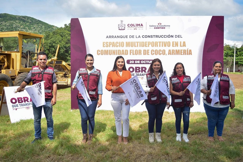 La gobernadora de Colima, Indira Vizcaíno Silva, dio este jueves el banderazo al inicio de la construcción de un nuevo espacio multideportivo en la comunidad de Flor de Coco, municipio de Armería, a través del programa de Obras que Transforman, mediante el Fondo de Infraestructura Social para las Entidades (FISE) 2022, en la que se invertirán más de siete millones de pesos, beneficiando a mil 080 habitantes.
