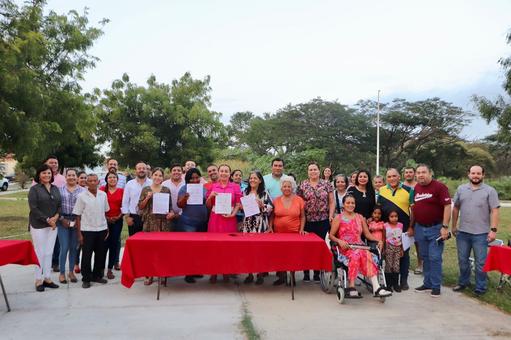 Tras la aprobación de la municipalización, la Presidenta Gutiérrez Andrade entregó al Comité de Barrio una copia certificada de las escrituras de las dos áreas de cesión, destinadas para áreas verdes, para que tengan la certeza jurídica sobre esos terrenos y los defiendan si una futura administración municipal quisiera venderlos.