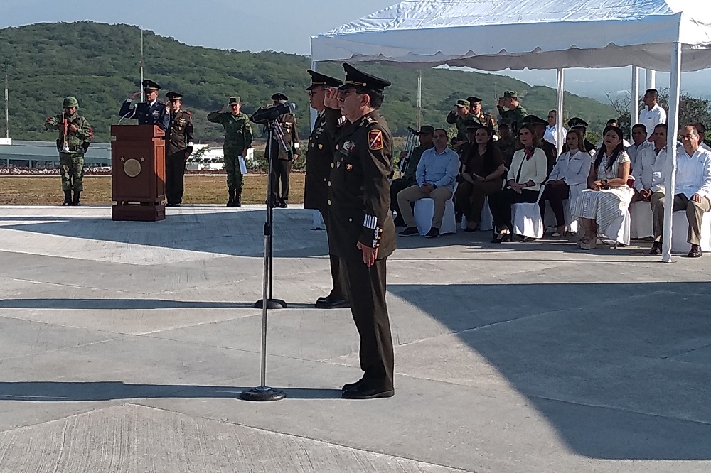 La gobernadora del estado de Colima, Indira Vizcaíno Silva, presenció el cambio de mando de General de Brigada de Estado Mayor de la Vigésima Zona Militar, que asumió este 1 de noviembre Adolfo Héctor Tonatiuh Velazco Bernal, en sustitución del General Hernán Cortés Hernández. La mandataria participó en la ceremonia de toma de posesión y protesta de Bandera este martes en la explanada del complejo militar.