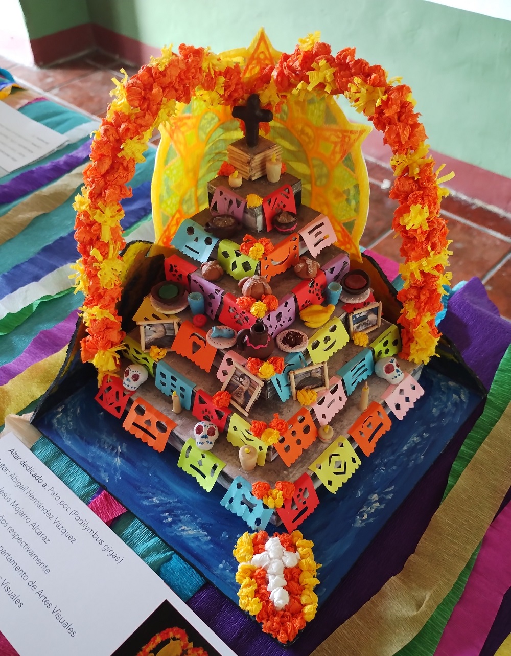 Patricia Ayala García, profesora investigadora del Departamento de Artes Visuales, comentó que el concurso de micro altares es resultado de un ejercicio realizado el año anterior de manera interna entre estudiantes de este departamento, y que este año se invitó a toda la comunidad universitaria a participar. Ayala García comentó que el ejercicio buscó también involucrar a la investigación, “no sólo sobre los elementos que un altar debe tener, sino sobre las especies de fauna que han desaparecido del planeta y fortalecer la expresión artística”.