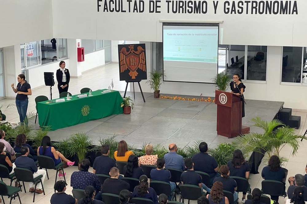 Sofía Alonso destacó en su informe el proyecto de vinculación de la Maestría del Área Fiscal con la Comisión Federal de Electricidad y la consolidación del programa de doble grado con la Universidad Simón Bolívar de Colombia. Además, dijo que cuentan con dos programas educativos certificados al 2023 por CACECA, de las carreras de Contador Público y de Administración.