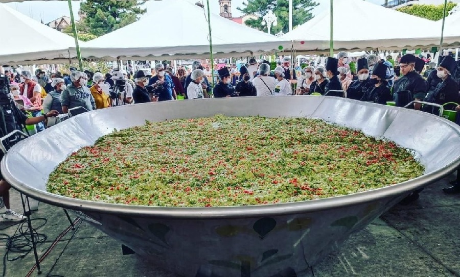 Oficialmente, en un tiempo récord de tres horas, se elaboraron 4 mil 971 kilogramos de guacamole con la participación de más de 300 personas, rompiendo la marca anterior registrada por el vecino país de Estados Unidos con 4 mil 100 kilogramos.