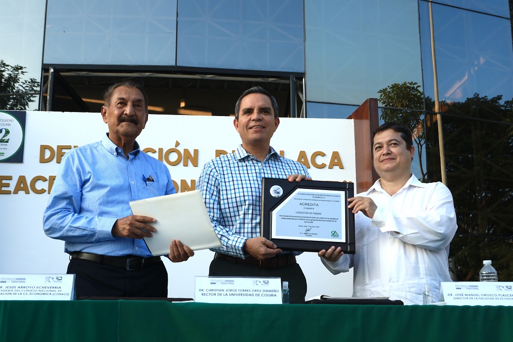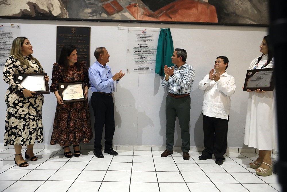 En el vestíbulo de la Facultad de Economía, este lunes el rector develó una placa conmemorativa de la reacreditación sus tres programas de estudios por cinco años más, hecha por el Consejo Nacional de Acreditación de la Ciencia Económica (CONACE). Con este proceso evaluador. La licenciatura en Economía alcanzó su cuarta acreditación nacional, mientras que las de Negocios Internacionales y Finanzas lograron la segunda.
