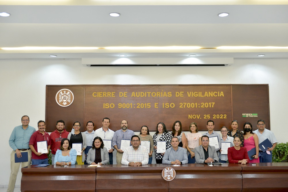 Durante el evento también se hizo entrega de certificados al equipo de auditores internos de la Universidad de Colima que lograron acreditar sus competencias en el estándar ISO 9001:2015 e ISO 19011:2018, ante el organismo MB Certification México, S.C.