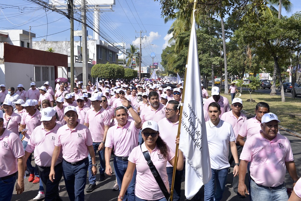 Este sábado, como parte de los festejos por el 42 aniversario del Sindicato Único de la Universidad de Colima (SUTUC), más de 3,400 trabajadoras y trabajadores universitarios participaron en una marcha que inició en el Instituto Universitario de Bellas Artes y concluyó en el casino del SUTUC, y que estuvo encabezada por el rector Christian Jorge Torres Ortiz Zermeño y Luis Enrique Zamorano Manríquez, secretario general del sindicato.