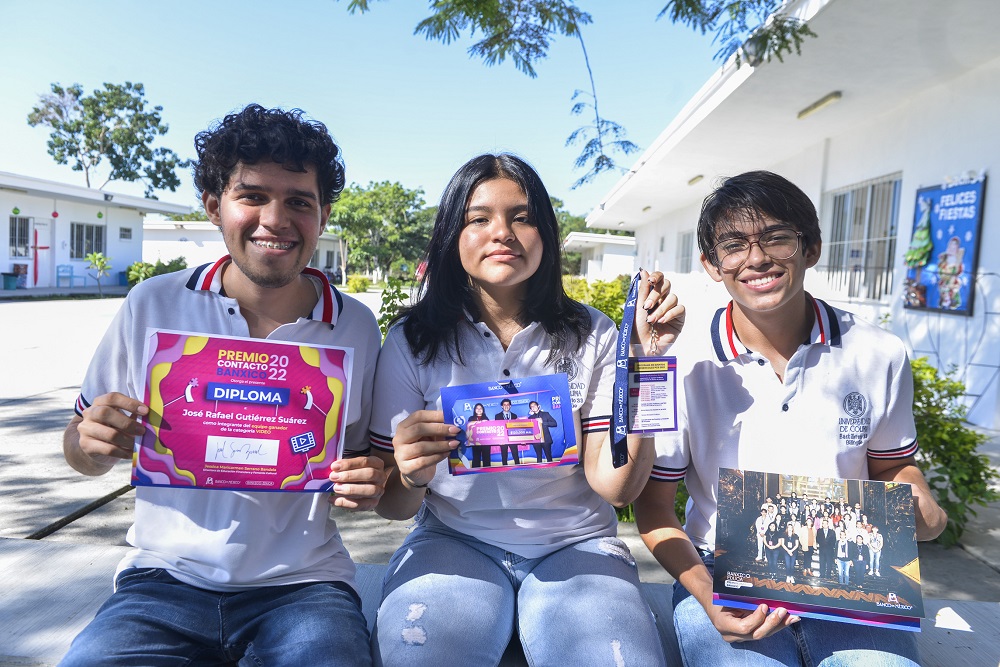 Iihuitl Arely Navarro Fuentes, Karol Josafat Cisneros Suárez y José Rafael Gutiérrez Suárez, alumna y alumnos del Bachillerato 33 de la Universidad de Colima, ganaron este fin de semana el primer lugar del concurso nacional: “Premio Contacto Banxico”, en el que participaron estudiantes de bachillerato de 29 estados del país.
