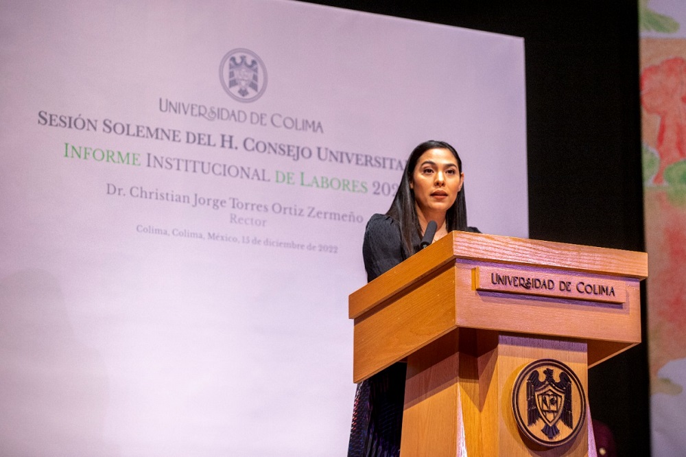 La gobernadora Indira Vizcaíno Silva, acudió este jueves al Informe de Labores 2022 del rector de la Universidad de Colima (UdeC), Christian Jorge Torres Ortiz Zermeño, donde reiteró su respaldo y el de su administración hacia la máxima casa de estudios, pues aseguró que “la educación es clave para la transformación, y en ese eje tan sensible y relevante, la UdeC es uno de nuestros más grandes aliados”; agregó que su gobierno ha entregado este año más de 500 millones de pesos a la institución educativa.