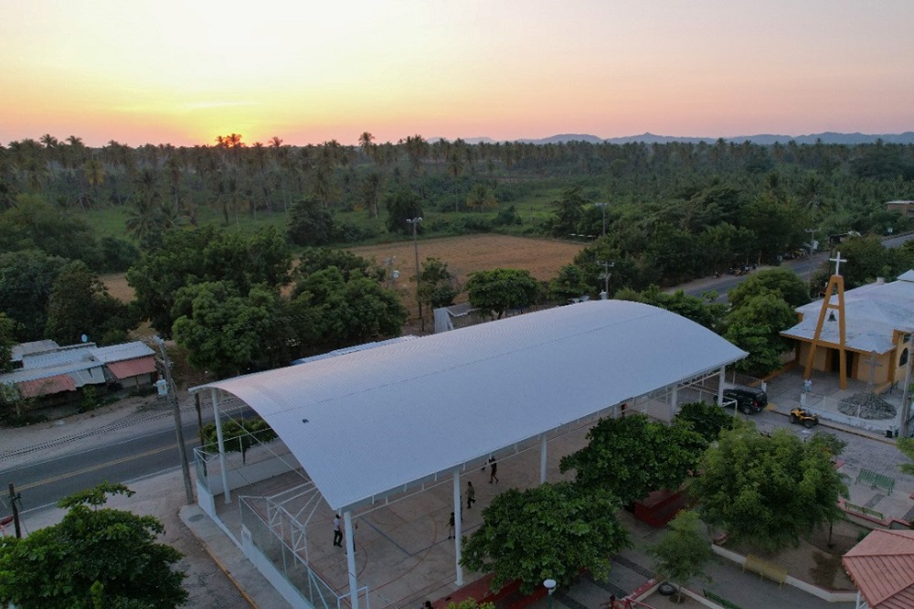 En esa comunidad de El Chavarín, y justo debajo del nuevo techado, que tuvo un costo de 2 millones de pesos, el director de Obras Públicas, Alam Vargas detalló que esa obra consistió en construir una estructura de 9.5 toneladas a base de perfiles metálicos de diferentes diámetros con acabado en pintura alkidálica blanca.
