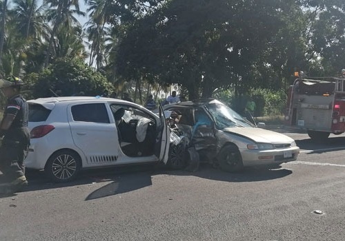 Tecomán, Col. Una mujer muerta y tres personas lesionadas, además de daños materiales de consideración, es el saldo que dejó el choque entre dos vehículos ocurrido este lunes en la carretera Colima-Tecomán, a la altura del Crucero de Caleras.