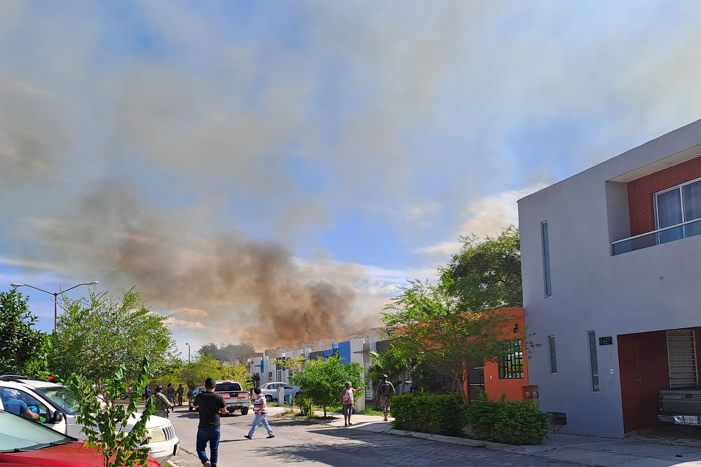 Villa de Álvarez, Col. El incendio de un pastizal, ocurrido este jueves por la tarde, en un predio localizado en la parte posterior de la colonia Punta Diamante de Villa de Álvarez y muy cerca de la estación de la Comisión Federal de Electricidad (CFE), causó alarma entre los vecinos debido a que las llamas llegaron hasta las viviendas, pero sin ocasionar daños.