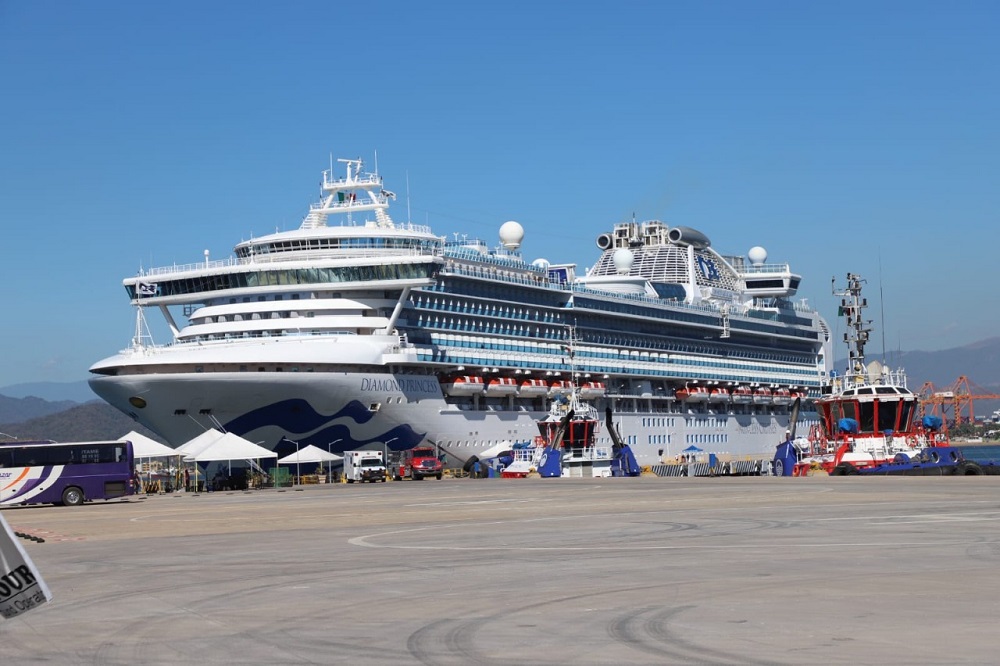 Manzanillo, Col. Con 1 mil 765 pasajeros y 1 mil 29 tripulantes el Crucero Diamon Princess, la mañana de este martes 03 de enero, hizo su arribo al puerto manzanillense como parte de la temporada de visita de cruceros 2022 – 2023.