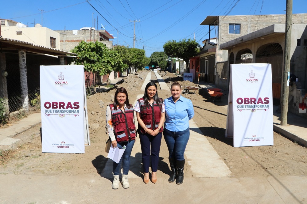 Posteriormente, Indira Vizcaíno constató los trabajos que se realizan en las calles Pino Suárez, Ejido Agua Zarca, Manuel Álvarez y Francisco Sarabia de esa cabecera municipal, donde se construyen 643 metros cuadrados de huellas de rodamiento de concreto hidráulico (de 0.75 m de ancho por 2.00 m de longitud y 18 cm de espesor), así como pasacalles.