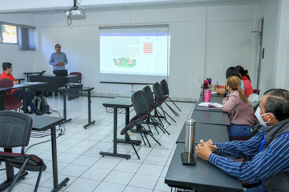 Un grupo de docentes de Biología participa en el curso “La olimpiada de Biología y la docencia en el nivel Medio Superior”, que se realiza como parte de las Jornadas Académicas 2023, impartido por Roberto Atilano Coral, doctor en Ciencias Químicas y responsable de la Olimpiada de Biología en la Universidad de Colima.