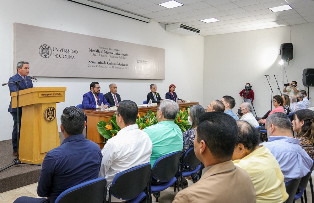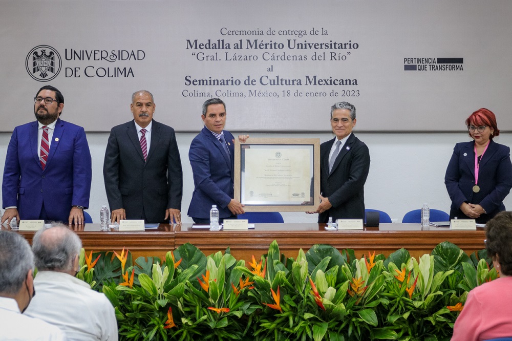 Este miércoles, en acto solemne celebrado en el Archivo Histórico de la Universidad de Colima, el rector Christian Jorge Torres Ortiz Zermeño, en nombre de la comunidad universitaria, entregó la presea al Mérito Universitario “Gral. Lázaro Cárdenas del Río” al Seminario de Cultura Mexicana, representado por su presidente, Felipe Leal Fernández, “por su papel relevante en la educación nacional y la difusión del conocimiento a través de las artes, las ciencias y las humanidades”.