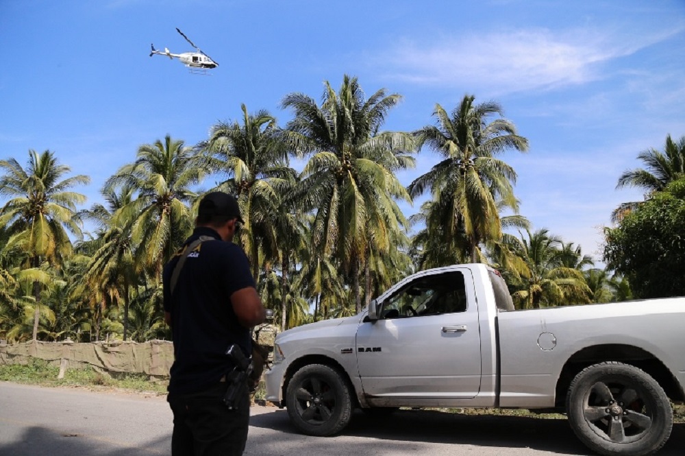 Aquila, Mich. Continúa el despliegue operativo por aire con helicóptero y por tierra con recorridos realizados por la Fiscalía de Michoacán, para tratar de localizar al profesor Antonio Díaz Valencia y al abogado Ricardo Arturo Lagunes, quienes se encuentran desaparecidos.