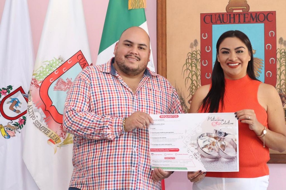 Cuauhtémoc, Col. Con el objetivo de brindar certeza jurídica a parejas que viven en unión libre, o simplemente que deseen formalizar una relación por la vía legal, el Ayuntamiento de Cuauhtémoc llevará a cabo una Jornada de Matrimonios Colectivos el próximo 13 de febrero a las 6:00 de la tarde, en el Andador Morelos de la cabecera municipal.