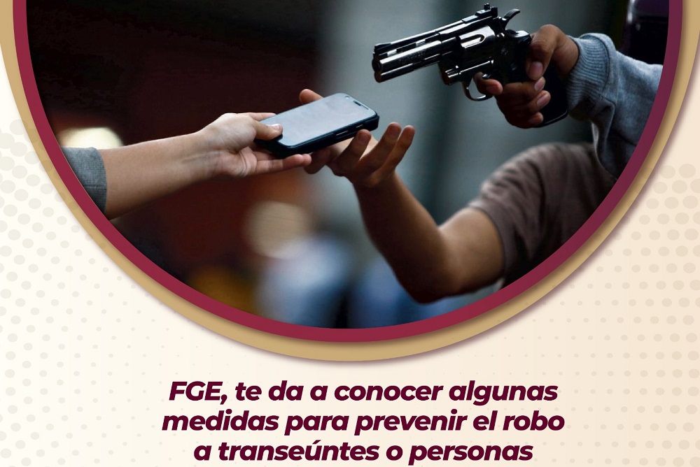 La Fiscalía General del Estado (FGE) a través de la Dirección de Prevención del Delito y Atención a Víctimas, te da a conocer una serie de medidas para prevenir el robo a transeúnte.
