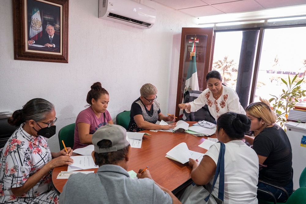 En la sala de juntas de la presidencia municipal, como ya es una costumbre, la alcaldesa recibió a las personas beneficiadas, a quienes brindó la asesoría en el llenado de la documentación correspondiente.