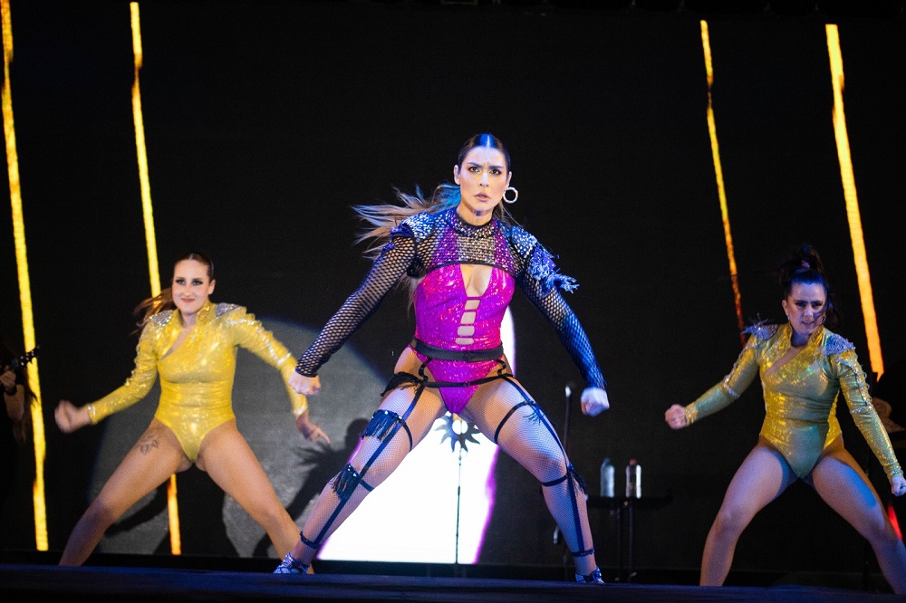 La coautora de “Piérdeme el respeto” también interactuó con su público, contó anécdotas, chistes, y subió al escenario a una de sus fans “Dalia” con quien hizo una llamada telefónica para dedicar una canción. Pero también hubo baile, y cumbias, y mucha alegría.