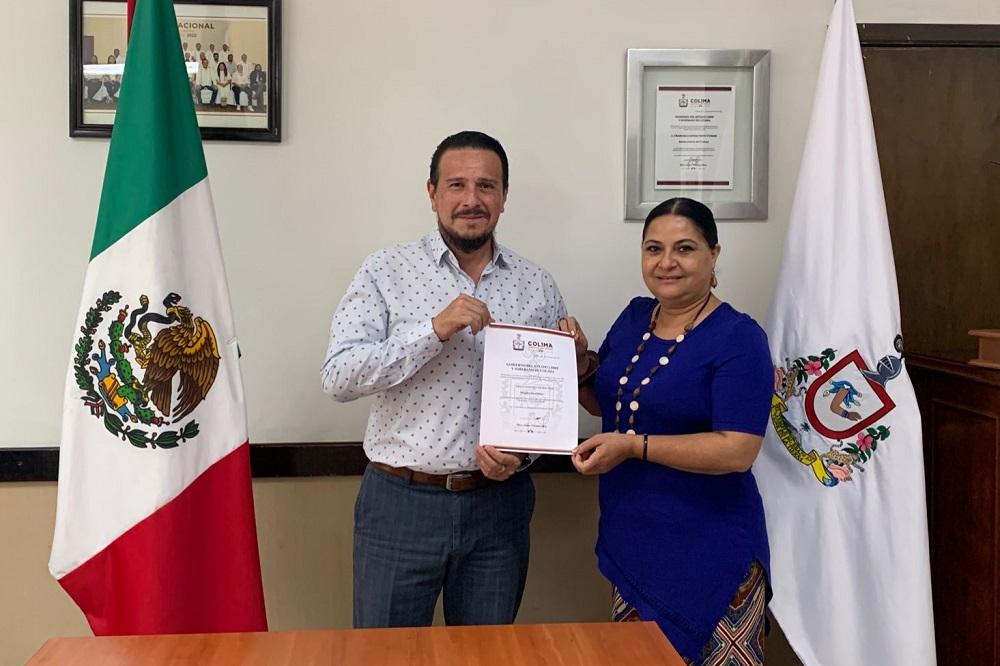 A nombre de la gobernadora del estado de Colima, Indira Vizcaíno Silva, el subsecretario del Trabajo, Francisco Javier Pinto Torres, entregó nombramiento oficial a Delia Liduvina Olmos Díaz, como titular de la Dirección del Trabajo.