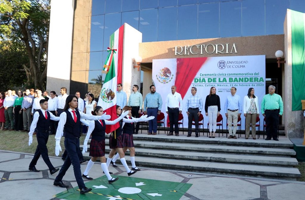 “La Bandera de México resume nuestra historia de independencia, libertad, soberanía, democracia, paz y unidad, y su día -24 de febrero- es uno de los más importantes para todas y todos los mexicanos, buscando sensibilizar y promover la difusión, el conocimiento y el respeto a nuestros símbolos patrios, específicamente a nuestra enseña nacional”, expresó el secretario de Educación y Cultura del Gobierno del Estado de Colima, Adolfo Núñez González, al asistir con la representación de gobernadora Indira Vizcaíno Silva a la ceremonia cívica conmemorativa, en la explanada de la rectoría de la Universidad de Colima.