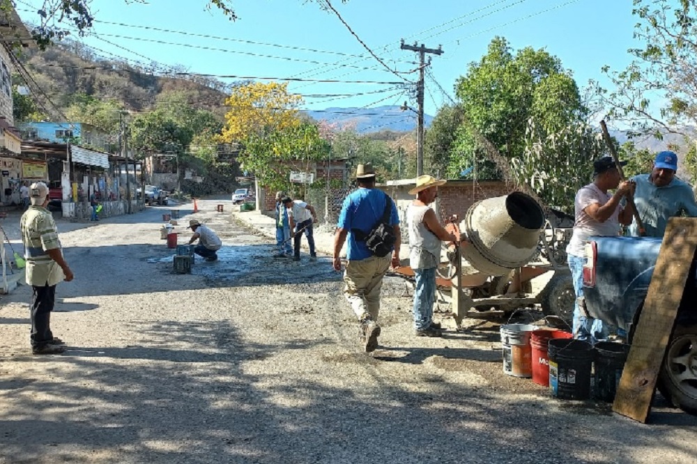 Para estos trabajos el Ayuntamiento de Aquila aporta el cemento y los materiales de construcción necesarios, y la comunidad indígena la mano de obra requerida con la que se está rehabilitando esta importante vía de comunicación en la zona más afectada por baches y pozos que afectaban la circulación de vehículos y a las mismas unidades.