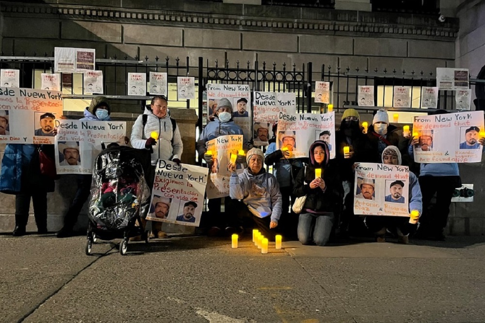 NUEVA YORK, E.U., 16 de marzo de 2023.- El miércoles, 15 de marzo, al cumplirse dos meses desde la desaparición forzada del abogado de derechos humanos, Ricardo Arturo Lagunes Gasca y el profesor Antonio Díaz Valencia, líder de la comunidad indígena de Aquila, Michoacán, Movimiento por Justicia del Barrio, una organización comunitaria en la Ciudad de Nueva York compuesta de inmigrantes, volvieron a manifestarse en frente del Consulado Mexicano para exigir la aparición inmediata con vida de los dos luchadores sociales.