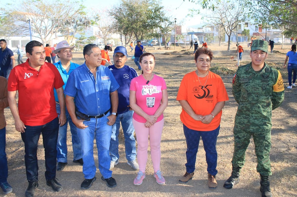 Villa de Álvarez, Col. Una megabrigada de limpieza encabezada por la Presidenta Municipal de Villa de Álvarez, Esther Gutiérrez Andrade, realizó esta mañana labores para el rescate del Parque Lineal en la colonia La Comarca.