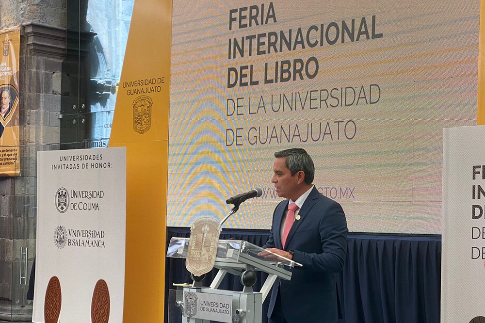 Este jueves, en la inauguración presencial de la 65 edición de la Feria Internacional del Libro de la Universidad de Guanajuato (FILUG), dedicada a las universidades de Salamanca, España y de Colima, Christian Jorge Torres Ortiz Zermeño, rector de la UdeC, agradeció la invitación a este evento, el más antiguo de su tipo en el país “y un punto de encuentro de las manifestaciones culturales, artísticas y académicas con los universitarios y su comunidad”.