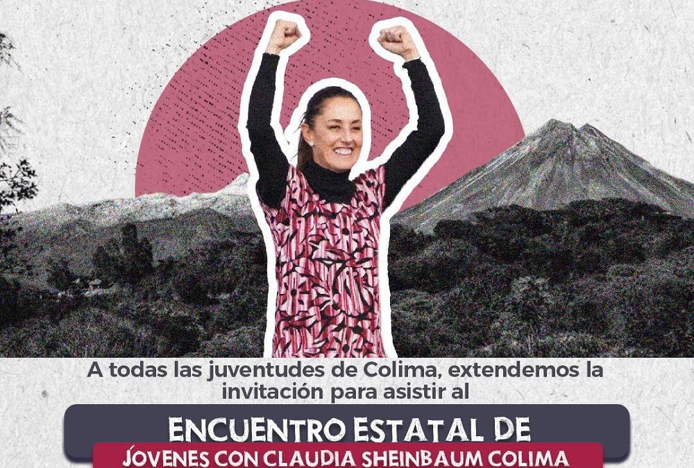La Red #EsClaudiaColima invita a todas las juventudes del estado para que asistan al encuentro estatal de Jóvenes con Claudia Sheinbaum, evento que se llevará a cabo este próximo sábado 25 de marzo a las 4:30 pm en el Casino del SNTE, ubicado en Av. Tecnológico esquina con la calle Ma. Concepción Barbosa, municipio de Villa de Álvarez.