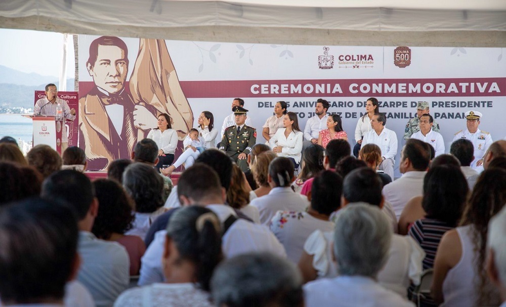 Manzanillo, Col. La gobernadora de Colima, Indira Vizcaíno Silva, encabezó este martes, junto representantes de diversas instituciones de los tres órdenes de gobierno y organizaciones sociales, la ceremonia conmemorativa del 165 aniversario de que el entonces presidente de México, Benito Juárez García, zarpó de Manzanillo a Panamá, acto que se enmarca en la celebración de Colima 500 Años: 1523-2023, y para incorporar a dichos festejos las fechas y acontecimientos más memorables de la historia de nuestro estado.