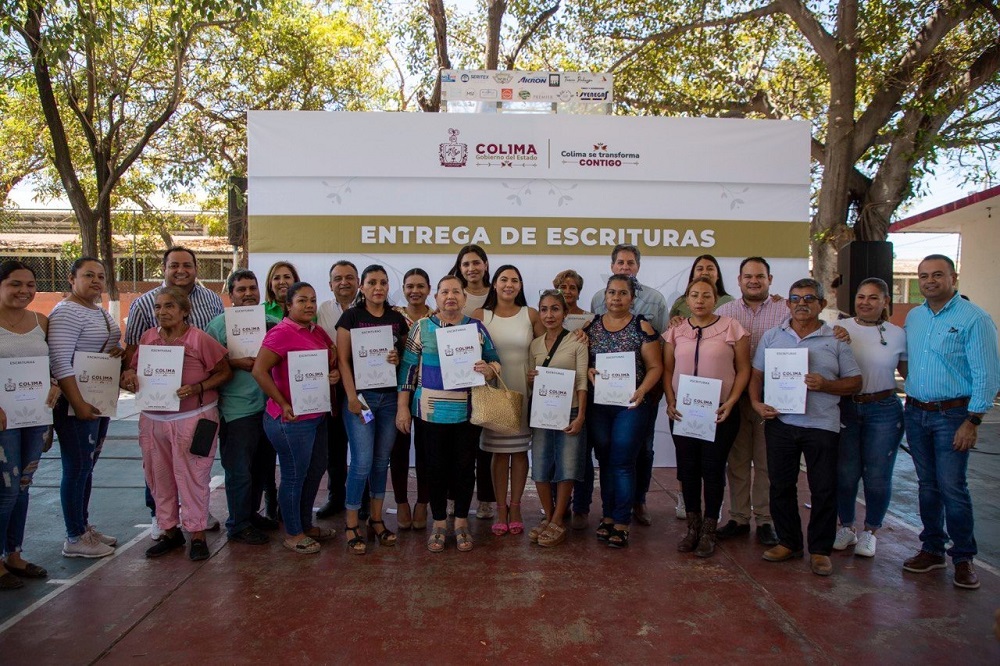 Felipe Cruz Calvario detalló que se entregaron cinco escrituras del municipio de Armería (colonias Valle del Sol y El Arenal); dos de Ixtlahuacán (colonias Carlos de la Madrid Virgen y Gobernadores) y trece de Tecomán (La Estación, Palma Real I y II, El Chamizal y San José). “Es muy importante contar con el documento jurídico que ampara la certeza de la propiedad y es necesario regularizar muchas colonias que conforman parte de las cabeceras municipales y poblaciones rurales”, expuso el titular del Insuvi.