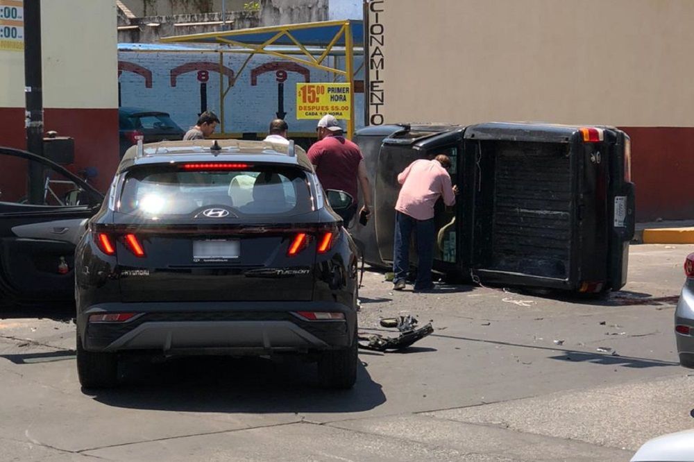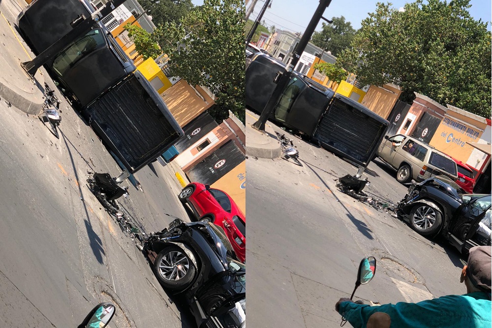 El accidente se registró en el cruce de las calles 16 de septiembre y Gildardo Gómez, viéndose involucrados dos camionetas, donde una de ellas por el impacto recibido volcó quedando acostada sobre uno de sus lados.