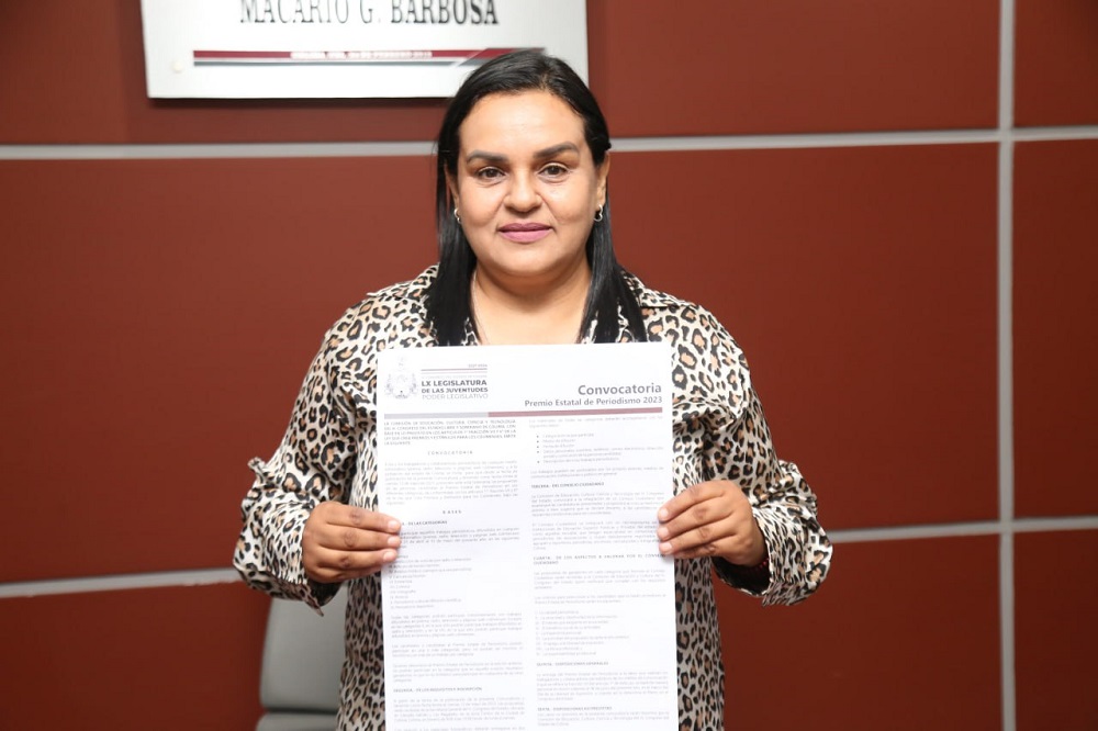 La diputada Myriam Gudiño, presidenta de la Comisión de Educación, Cultura, Ciencia y Tecnología de la Sexagésima Legislatura del H. Congreso del Estado, en rueda de prensa invitó a periodistas, medios de comunicación, instituciones o público en general, a inscribir o auto postular propuestas en la convocatoria al Premio Estatal de Periodismo 2023, a partir del hoy viernes 21 de abril y hasta 12 de mayo del presente año, en diversas categorías.