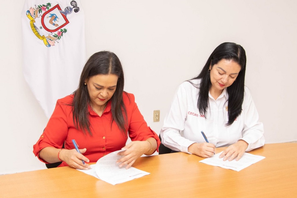 El convenio de colaboración en esta materia fue signado por la titular de Movilidad Colima, Blanca Livier Rodríguez Osorio y Rosa María Llamas Orozco, directora del Cecati 145.