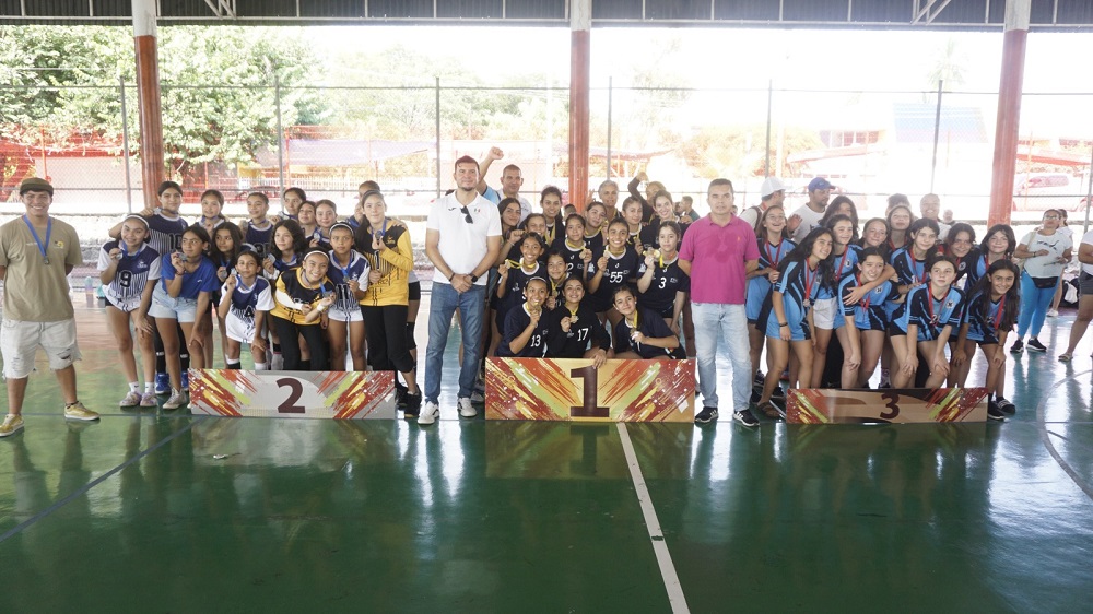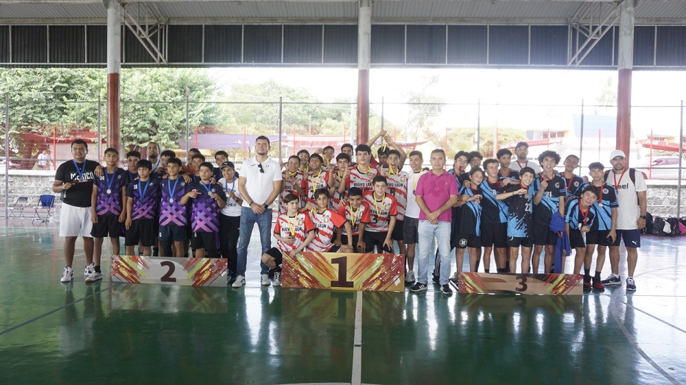 El director general del Instituto Colimense del Deporte (Incode), Alejandro Rodríguez Alvarado, y el presidente de la Asociación de Handball del Estado de Colima, Miguel Ángel Contreras de la Mora, encabezaron la premiación de los primeros lugares del Campeonato Nacional Infantil de Handball, que se llevó a cabo este fin de semana en la Unidad Deportiva ‘José María Morelos y Pavón’, la Unidad Deportiva Infantil (Udif) y la Unidad Deportiva ‘Gil Cabrera Gudiño’, en Villa de Álvarez