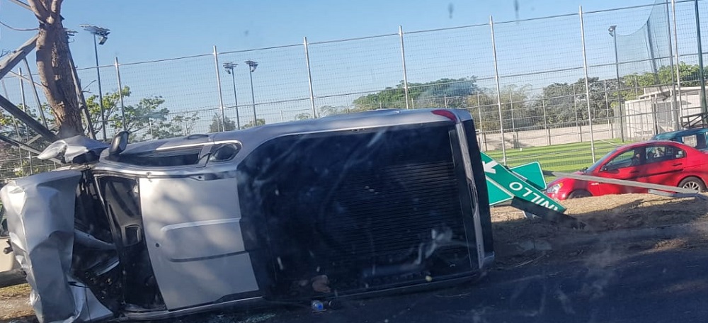 El accidente se registró poco antes de llegar a la glorieta frente al Hospital Regional Universitario, en donde el conductor de una camioneta color gris al parecer perdió el control de la unidad, derrapando unos metros y chocando contra señalamientos.