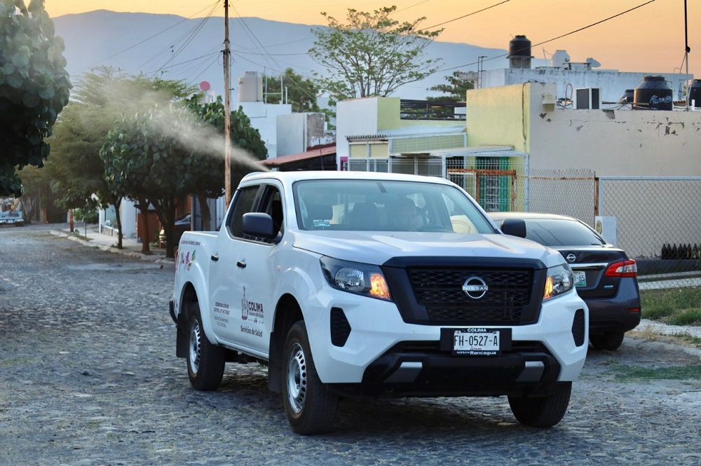 Esta fumigación para disminuir la densidad del mosco transmisor y el riesgo de infectar a la población, se realiza este viernes en Villa de Álvarez, específicamente en las colonias Palo Alto, Liberación, Real Centenario, Solidaridad, Ramón Serrano, La Comarca e Higueras del Espinal.